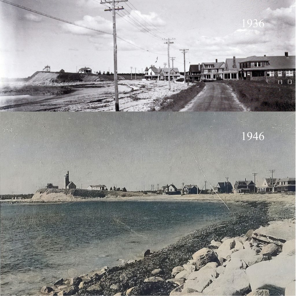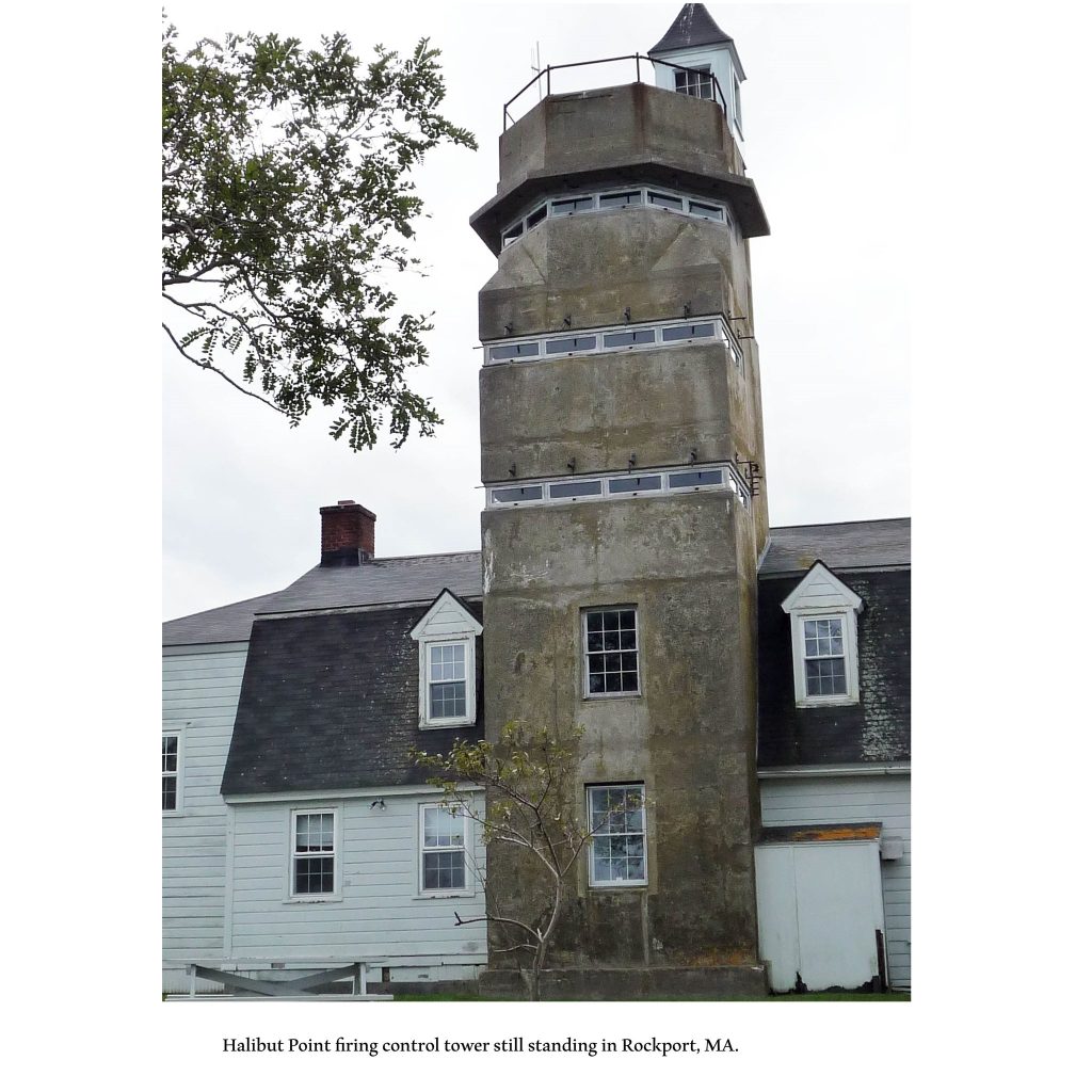 Gelaspus Point tower was very similar in design to the Halibut Point firing control tower still standing in Rockport, MA., the only difference being that the attached barracks and mess hall on Great Hill had a simpler roofline.