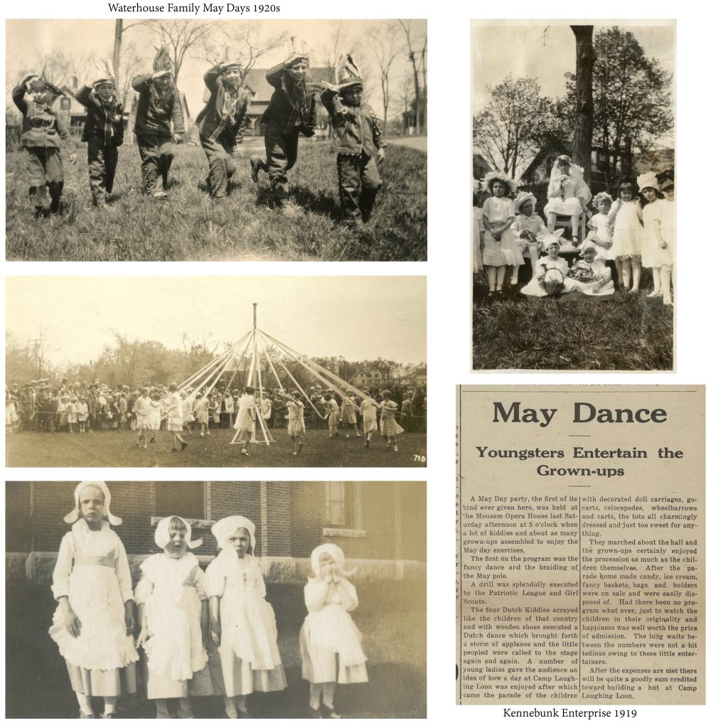 There was much rebirth to celebrate here after the end of WWI and The Spanish Flu pandemic. May Day was primarily an opportunity for children to perform and play dress up to entertain the adults in Kennebunk during the 1920s. Many thanks to Carolyn Sherman for sharing her Waterhouse/Harmon Family May Day photos with me.