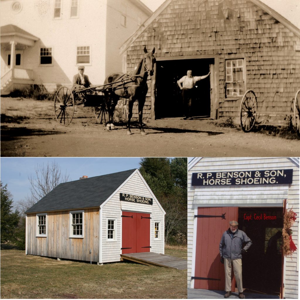 Captain Cecil Benson served on 30 merchant vessels during his maritime career. In the mid-1990s he inherited his grandfather’s complete blacksmithing tool set from his father. He donated the tools to KHS and built a functional replica of the Benson Blacksmith Shop at the Kennebunkport Historical Society’s North Street Campus in 2005. “I consider this task to be not only a heritage, but also a legacy,” Cecil said. “Perhaps a farrier could be brought in from time to time to shape a shoe and maybe even shoe a horse!”