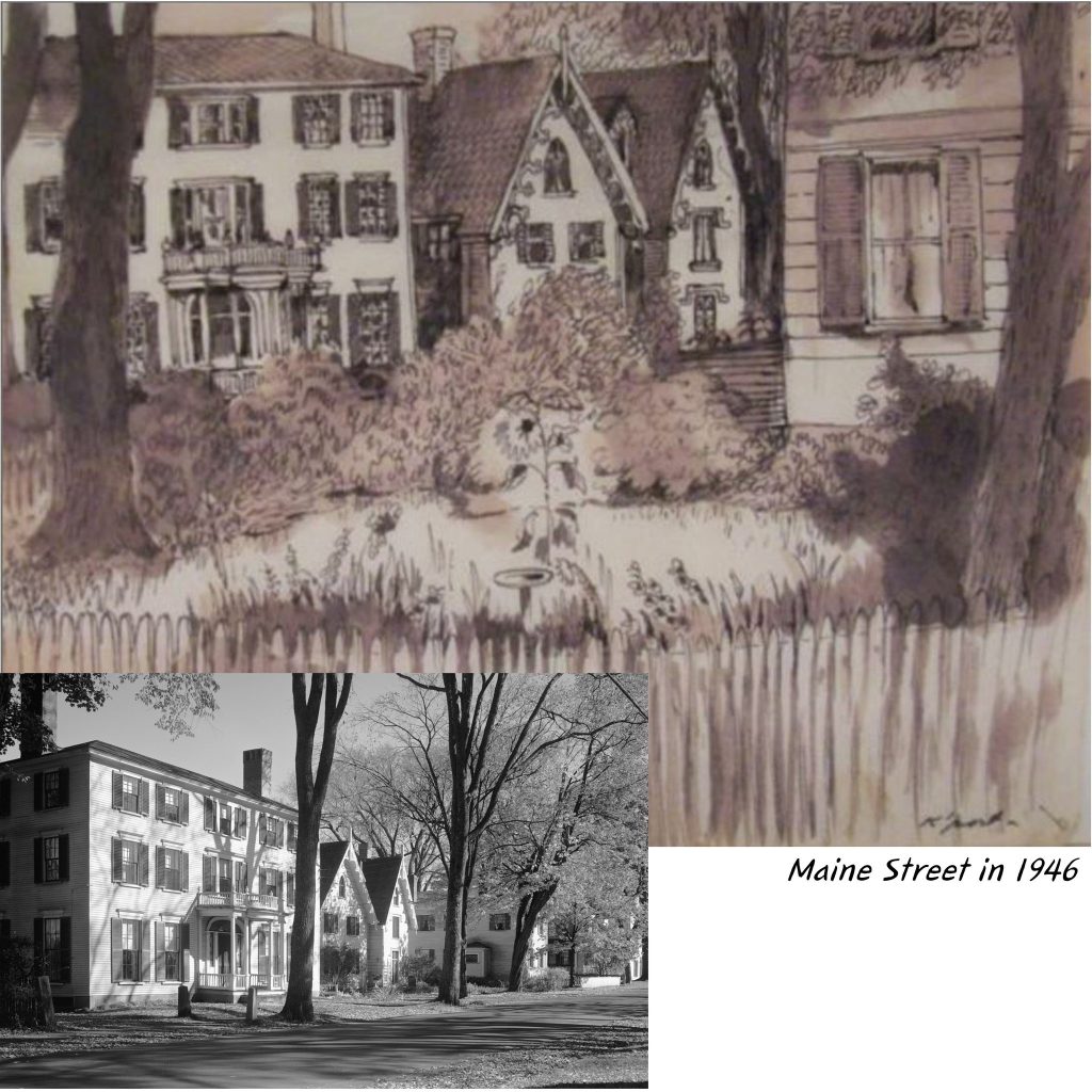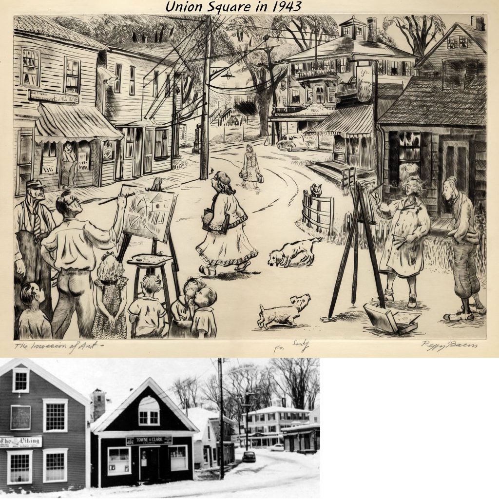 Peggy and her husband divorced in 1940. Around that time, she spent several summers among the art crowd at Ogunquit. She visited Kennebunkport several times during the 1940s, capturing village hilarity in drypoint, paint and poetry.