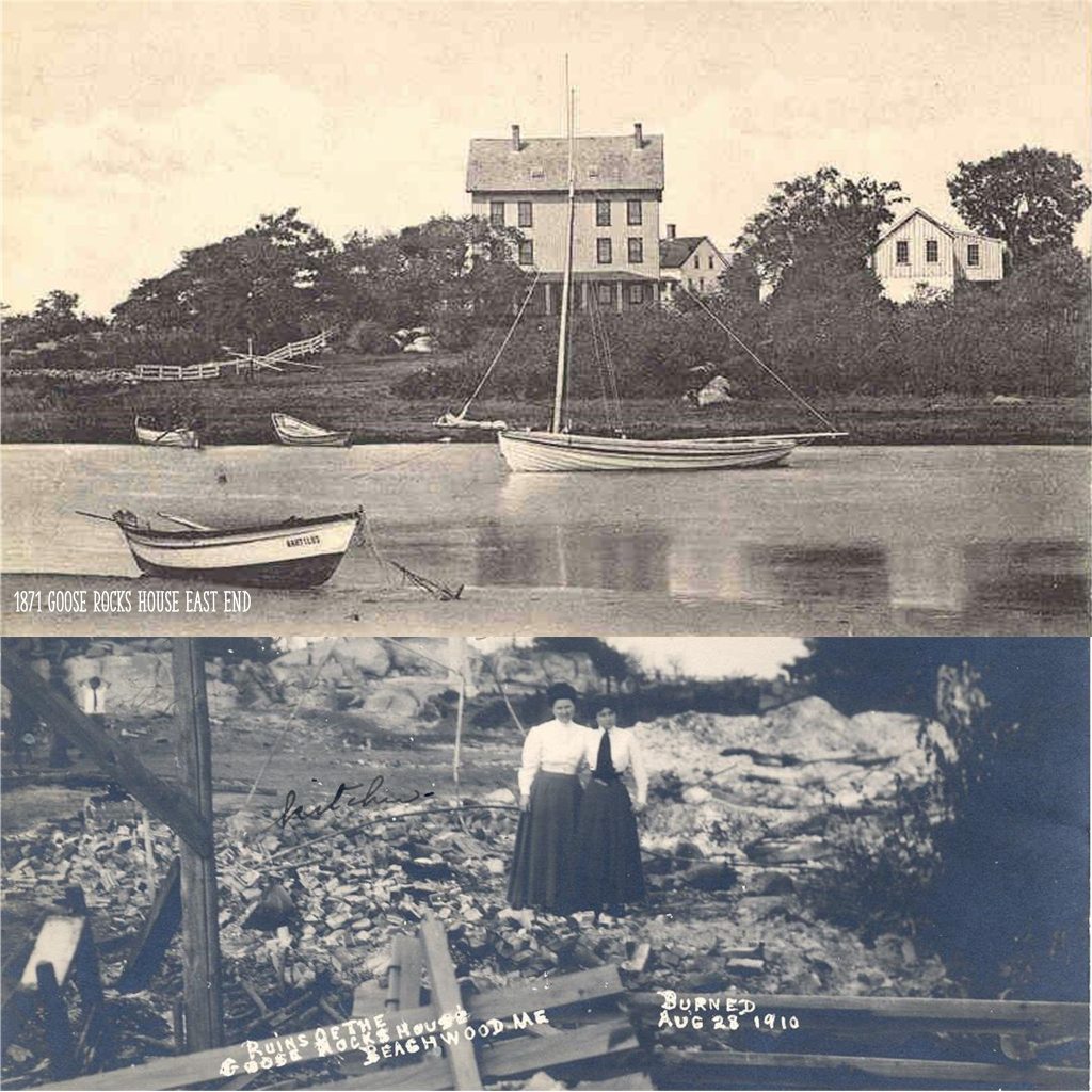 The first hotel built at Goose Rocks Beach in 1871 was the Goose Rocks House at the east end of the beach overlooking Beaver Pond Creek. When it burned on August 28, 1910, the Goose Rocks Beach Community had no way to fight the fire.