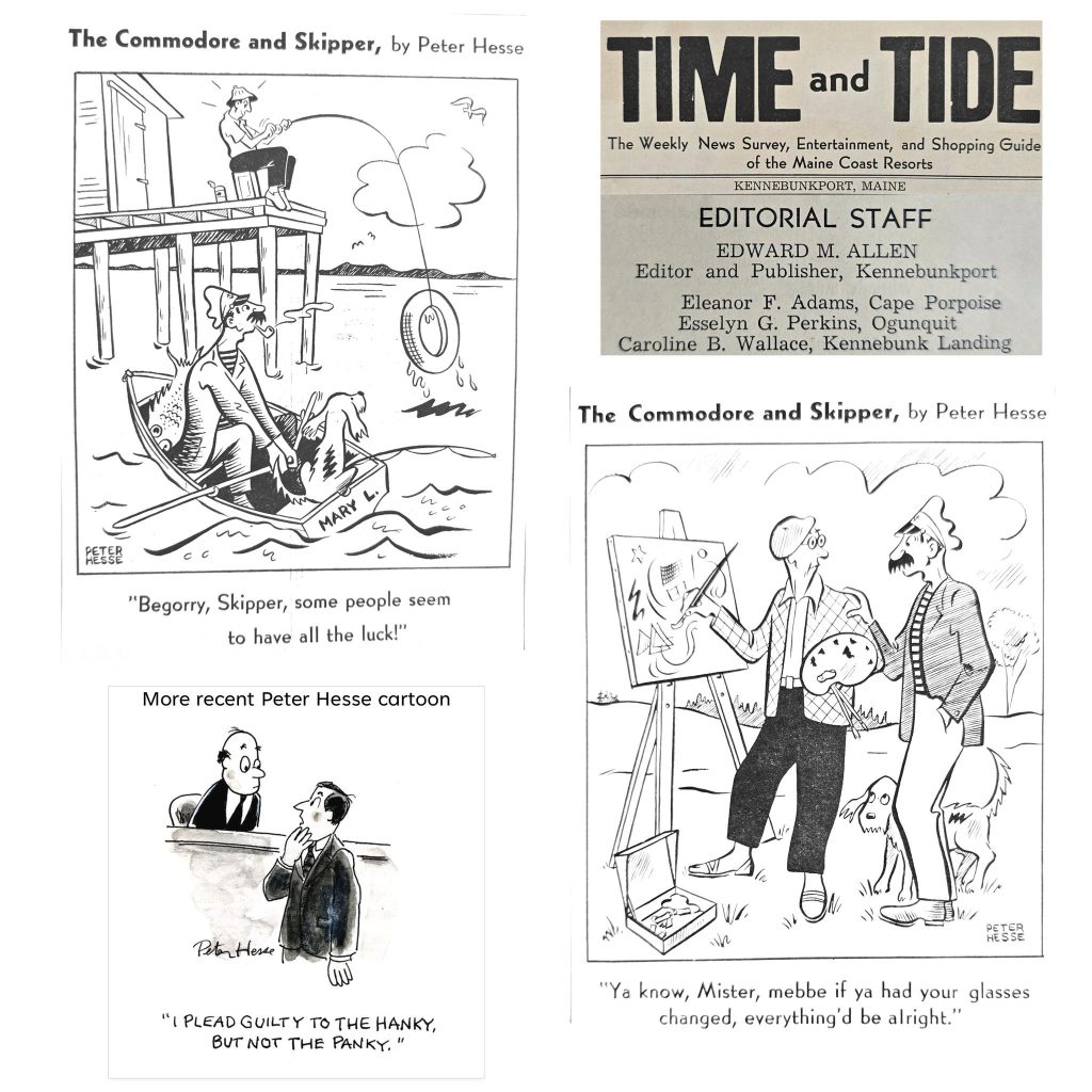 Browsing through 1946 Kennebunkport newspapers the other day I noticed that on the back page of every issue of the short-run Time and Tide newspaper there appears a skillfully drawn installment of a cartoon series called, The Commodore and Skipper, by Peter Hesse. Being a fan of cartoons and of local history, I chased his story.