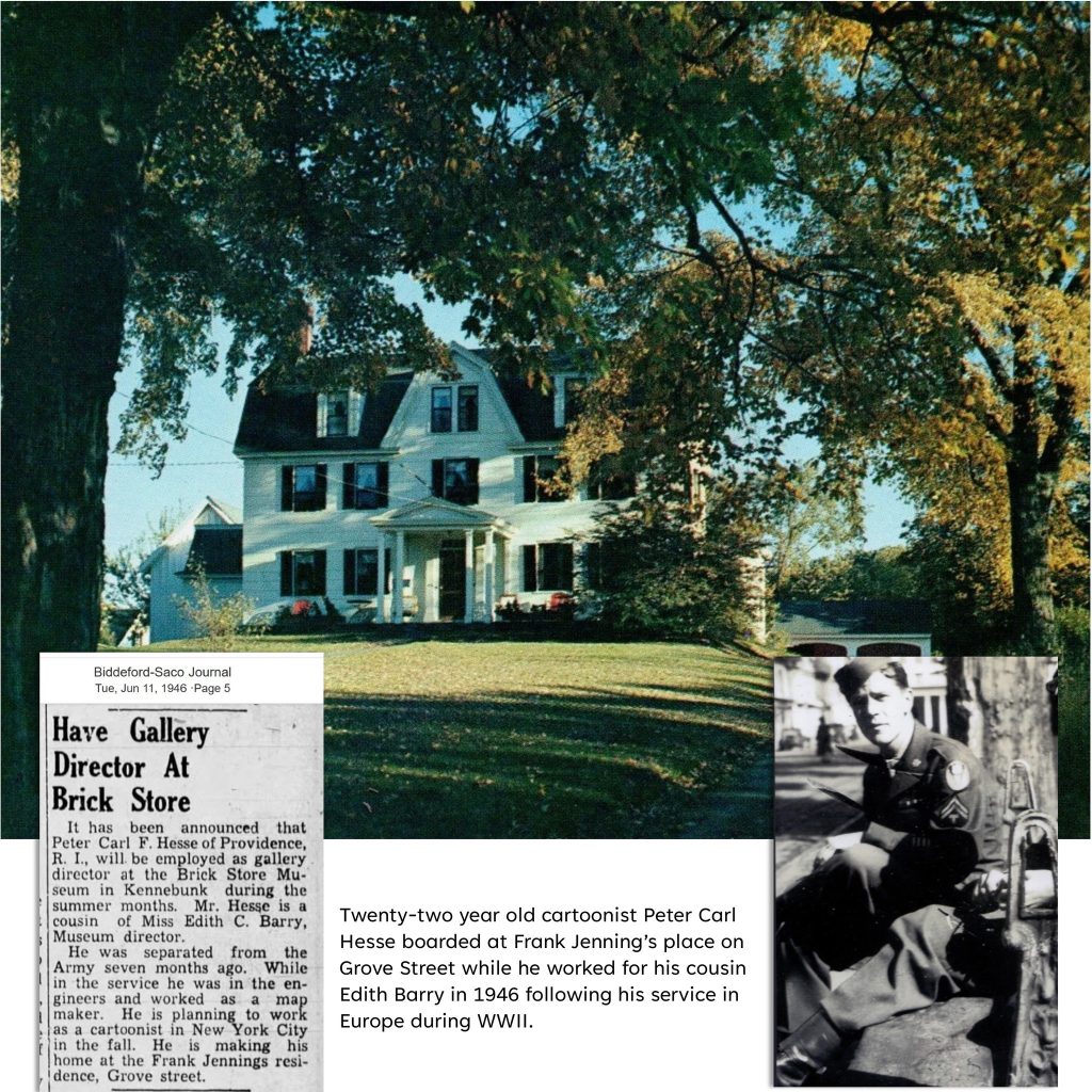 Hesse reported to his Kennebunk Job in June of 1946. He boarded with Frank Jennings of Grove Street while running the revolving gallery exhibits, weekly sketch club, and art lessons at the museum all summer. In his spare time, he drew weekly cartoons for Time and Tide.