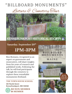 Join author and cemetery historian Ron Romano for a fascinating lecture and walking tour on the unique “billboard monuments” found in Maine’s historic cemeteries. Romano, recognized as an expert on gravestones and stonecutters, will share insights from his years of research and published works. Following the talk, he will lead participants through the cemetery to explore these remarkable monuments firsthand.