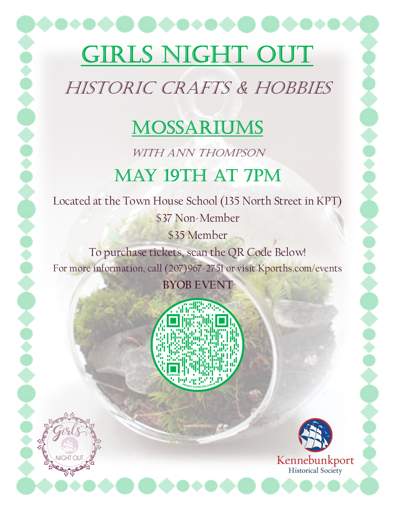 To honor history by gathering community women to share historic crafts & hobbies, but also stories, the Kennebunkport Historical Society introduces, “Girl’s Night Out”.