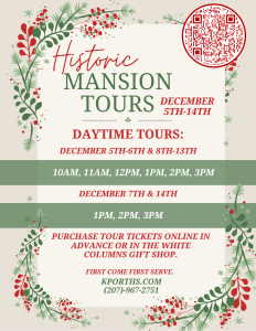 Built in 1853, White Columns is one of the Kennebunkport Historical Society’s premier properties. Owned and loved by the same family for 130 years, the Victorian-era home has retained its old-world charm and still contains the home’s original furnishings. Step back in time by taking a guided tour. Docents will lead you through seven rooms of the stately home and share stories about three generations of the Perkins-Nott family that lived, loved and lost in this magnificent Greek revival mansion. The tour includes history of Kennebunkport, its shipbuilding and maritime traditions, and the intriguing story of the family that inhabited the home.